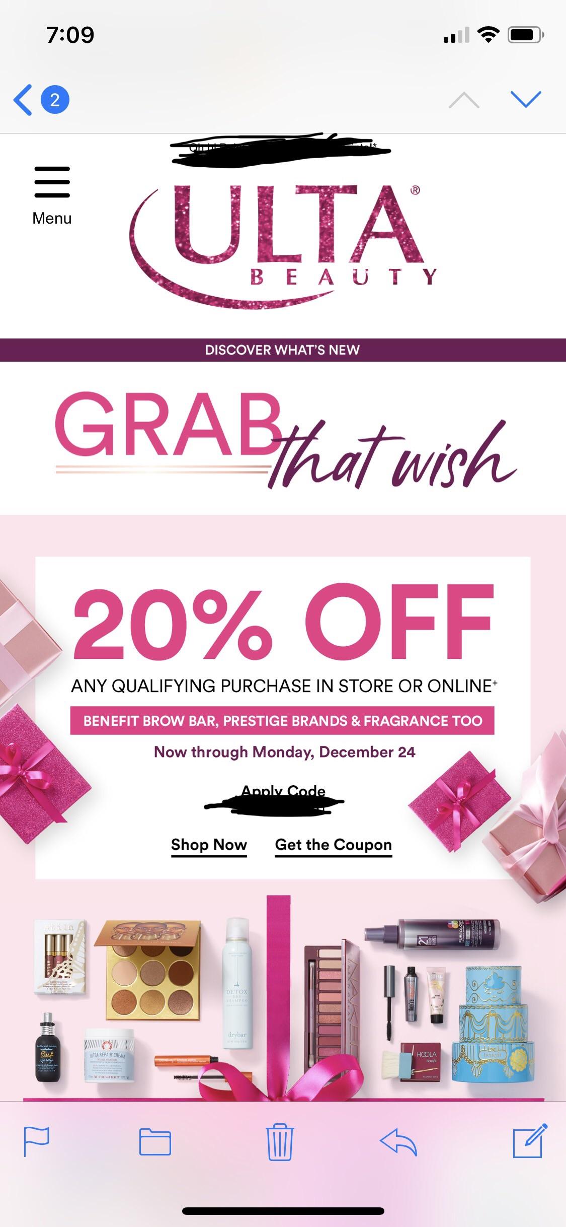 Save 20% off any $15 order · end of year ulta beauty promo code:
